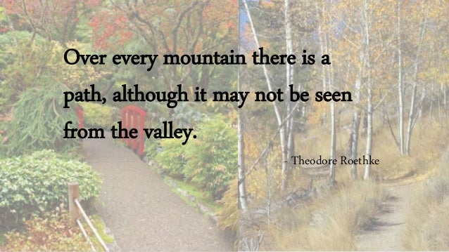 - 16. Over every mountain there is a path, although it may not be seen from the valley. - Theodore Roethke